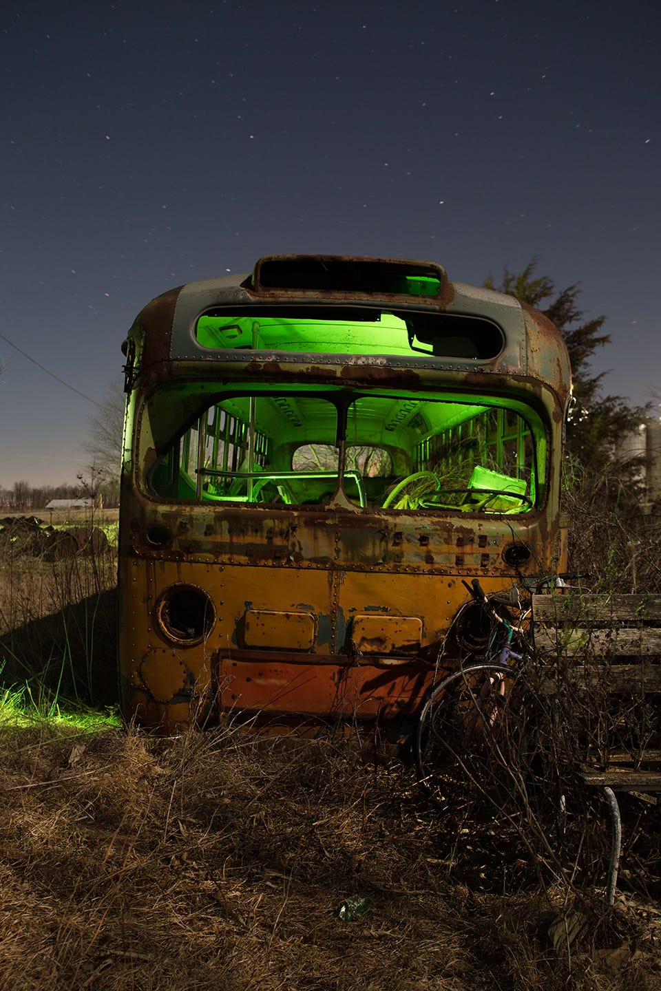 Sometimes a little adventure into the frigid winter turns into some Knowledge Dropped. Such was the case when we decided to throw ourselves a little belated Blood Blue Supermoon party after the clouds cleared the following night. Perfect skies. Not so perfect temperatures. With a low near 5 degrees, we bundled up and hit the road, south-ways toward central Illinois to find ourselves a Lost Bus, courtesy of some directions from friend and fellow photographer, Will Hiland.